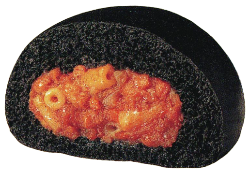 タブーに挑戦した異色の傑作当時はイタリア料理ブームもあり、食品業界でタブーとされていた黒色でインパクトのある生地と、マカロニ入りトマトソースの洋風な味付けで人気となったヒット商品です。