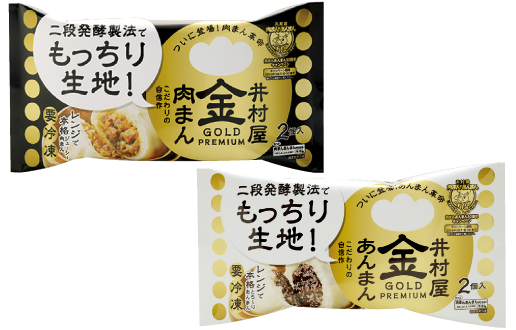 「ゴールド肉まん・あんまん」発売二段発酵製法とは…手包みしたような、本格的な生地を目指した井村屋独自の技術による製法。発酵を2回行うことで、風味・旨み、もっちりとした食感を引き出した生地に仕上がるのが特長です。
